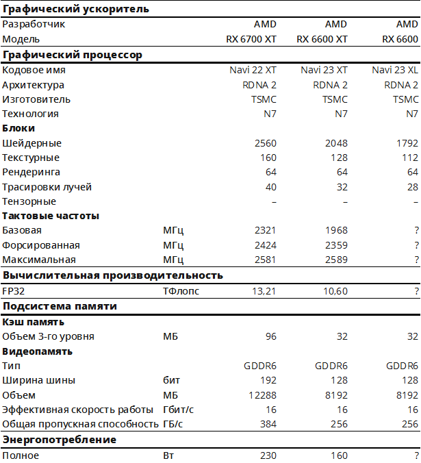 Видеокарты Radeon RX 6600 должны появиться в продаже в сентябре, они предложат 8 ГБ видеопамяти и урезанный графический процессор Navi 23, характеристики которого до сих пор неизвестны, но должны совпадать с используемой в Radeon Pro W6600 версией, включающей 1792 вычислительных блока. Видеокарта предназначена для игр в разрешении 1080p.