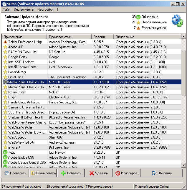 - SUMo 3.4.10.185 (датирована 03.11.2012, размер: 3.0 Мб)