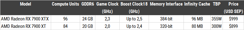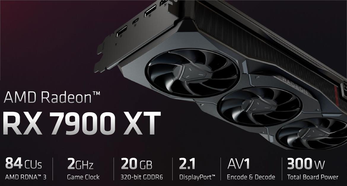 - Radeon RX 7900 XT — 84 CU; 2,0 ГГц; 20 ГБ GDDR6 320-бит и TBP 300 Вт
