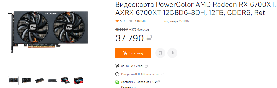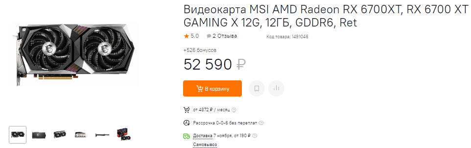 Начнём с Radeon RX 6700 XT. В наличии есть видеокарты, выпущенная силами MSI, а также модель, созданная в PowerColor. В первом случае вам придётся заплатить 52 590 рублей, тогда как во втором – всего 37 790 рублей. Выгода очевидна, а логики брать дорогостоящую модель просто нет, ведь за те же 52 тысяч рублей можно отхватить куда более мощную Radeon RX 6800 XT. Вы можете долго изучать различия, смотреть на тактовые частоты и качество системы охлаждения, вот только нет ничего, чтобы заставило брать графический чип младшего ценового сегмента по цене графического чипа старшего ценового сегмента. Не видитесь на бренды, ведь MSI может и делает неплохие видеокарты, но внутри всё равно будет всё тот же графический чип, а прирост количества кадров в случае разгона не превысит 5%.