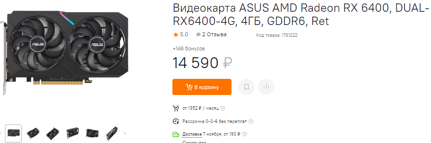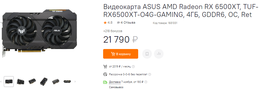 Согласитесь, что довольно странно за Radeon RX 6500 XT просить почти 22 тысячи рублей. Похоже, у ASUS другое мнение, ведь этот графический чип там завернули в красивую обёртку и продают намного дороже его реальной стоимости. Для сравнения, PowerColor предлагает Radeon RX 6500 XT за 16 тысяч. Ну ладно бы перед нами был флагман, которому нужна продвинутая система охлаждения. В таком случае переплата в 6 тысяч могла бы быть нам понятна. Вот только Radeon RX 6500 XT представляет собой крайне бюджетный графический чип, который не нуждается в продвинутой системе охлаждения. Здесь всего 4 Гб видеопамяти и 64-битная шина. Не платите за бренды, ведь в этом случае вы действительно окажитесь в минусе.