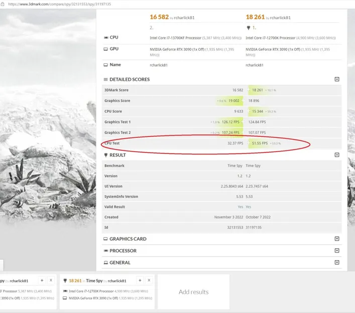 Согласно представленным таблицам, при «стандартных» условиях без задействования технологии трассировки лучей Radeon RX 7900 XTX подчас может вполне тягаться с флагманской моделью NVIDIA в лице GeForce RTX 4090: так, в Cyberpunk 2077 в разрешении 3840x2160 в разрезе значения средней кадровой частоты топовая видеокарта «красной команды» отстаёт от своей оппонентки всего на 7.3 %. Впрочем, в Call of Duty: Modern Warfare II разрыв уже более существенен и составляет 14.1 %.
