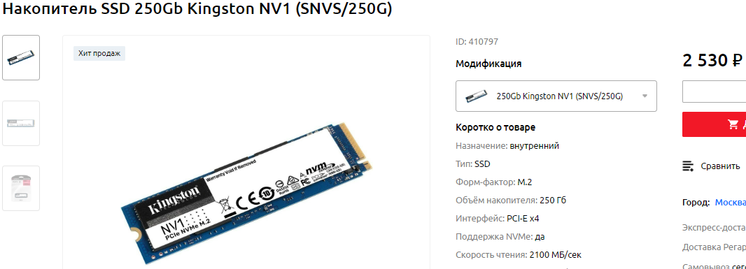 Сам по себе бренд Netac уже успел себя хорошо зарекомендовать. Относительно недорогое, но при этом качественное решение с высокой скоростью чтения и записи. Такого объёма памяти должно с лихвой хватить на систему и массу других программы, чья скорость работы очень важна, будь это игры или рабочие программы, в которых вам приходится проводить большое количество времени. С применением дополнительной скидки цена выходит 2,375 рублей.