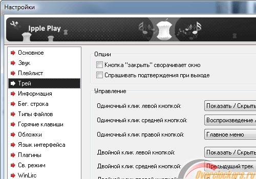 Из дополнительных возможностей можно выделить интеграцию в системную панель, всплывающие подсказки и бегущую информационную строку, которые отображают текущую проигрываемую композицию. Доступна ассоциация с файлами на уровне системы, горячие клавиши, поддержка модулей для BASS (в комплекте поставляются практически все основные компоненты для проигрывания наиболее распространенных форматов), присутствует поддержка прозрачности и WinLIRC. А вот уникальной функцией пожалуй можно назвать только одну – режим Авто Пауза. Ipple позволяет добавлять окна приложений, запуск которого автоматически переведет воспроизведение в режим паузы.