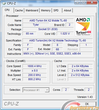 - CPU-Z 1.43 (0.4 MB, freeware).