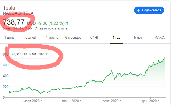 2020 год стал для Илона Маска поистине звёздным. Много лет его вообще мало кто воспринимал всерьёз, а многие с удовольствием называли шарлатаном, повергая критике все действия. Если проводить прямые параллели, то на 6 января 2020 года стоимость акций автомобильной компании оценивалась в 90 долларов за штучку, ну а сейчас она вплотную приблизилась к 740, что в 8 раз больше.