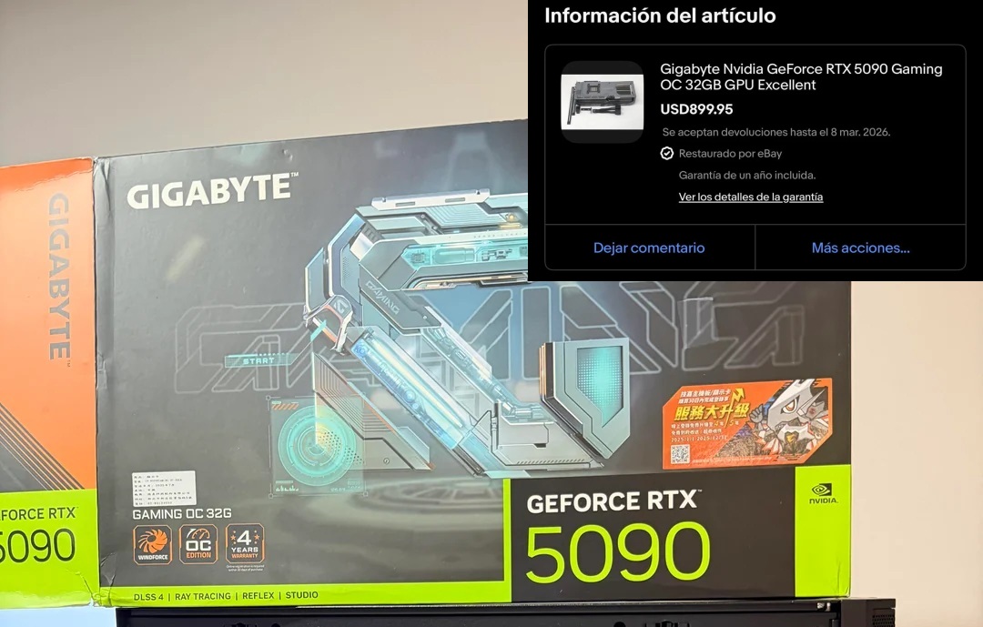 Ещё один участник Reddit, dnl633, сообщает, что приобрёл GeForce RTX 5090 от Gigabyte на площадке eBay за 899,95 доллара США, что более чем в два раза меньше по сравнению с рекомендованной стоимостью RTX 5090 при запуске. На текущий момент цена такой модели начинается от 3600 долларов. Конечно, видеокарта, доставшаяся пользователю, судя по всему, не является новой, но приобрести топовую модель менее чем за 900 долларов в настоящее время является большой удачей.