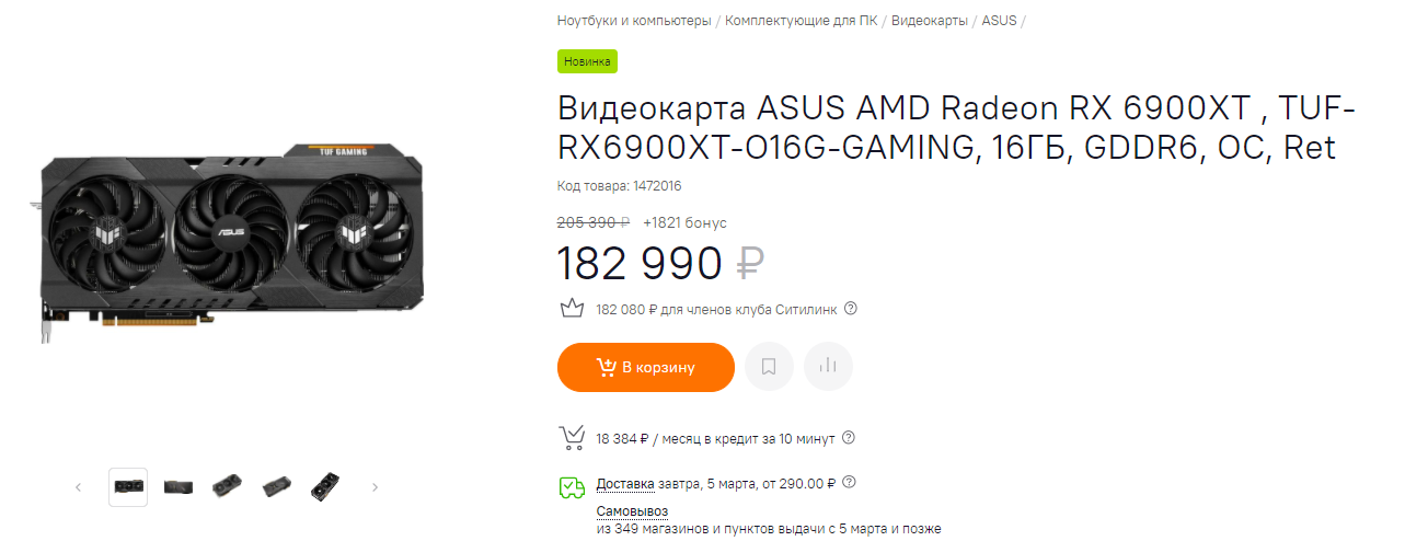 Теперь давайте изучим эффективность Radeon RX 6900XТ. Модель производства Asus с учётом большой скидки стоит 182 990 рублей, что соответствует 2472 долларам. Ферма из восьми таких видеокарт даёт нам 40.24 доллара в сутки или около 5 долларов на одну карту. Это значит, что в месяц мы получим 1207/150 долларов. Таким образом окупить одну такую карту или всю ферму можно за 16 с половиной месяцев. Просто ужасно.