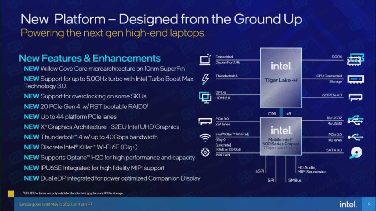 Источник сообщает, что процессоры Alder Lake-S обеспечат поддержку до 16 линий PCI Express 5.0, а чипсеты Intel 600-й серии переведут интерфейс DMI на использование PCI Express 4.0. Сам чипсет PCI Express 5.0 поддерживать не будет. Поддержка двухканальной памяти типа DDR5-4800 будет обеспечена только флагманскими моделями плат на основе чипсета Intel Z690. Процессоры Alder Lake-S сохранят поддержку DDR4, поэтому более доступные модели плат будут ориентированы на её использование.