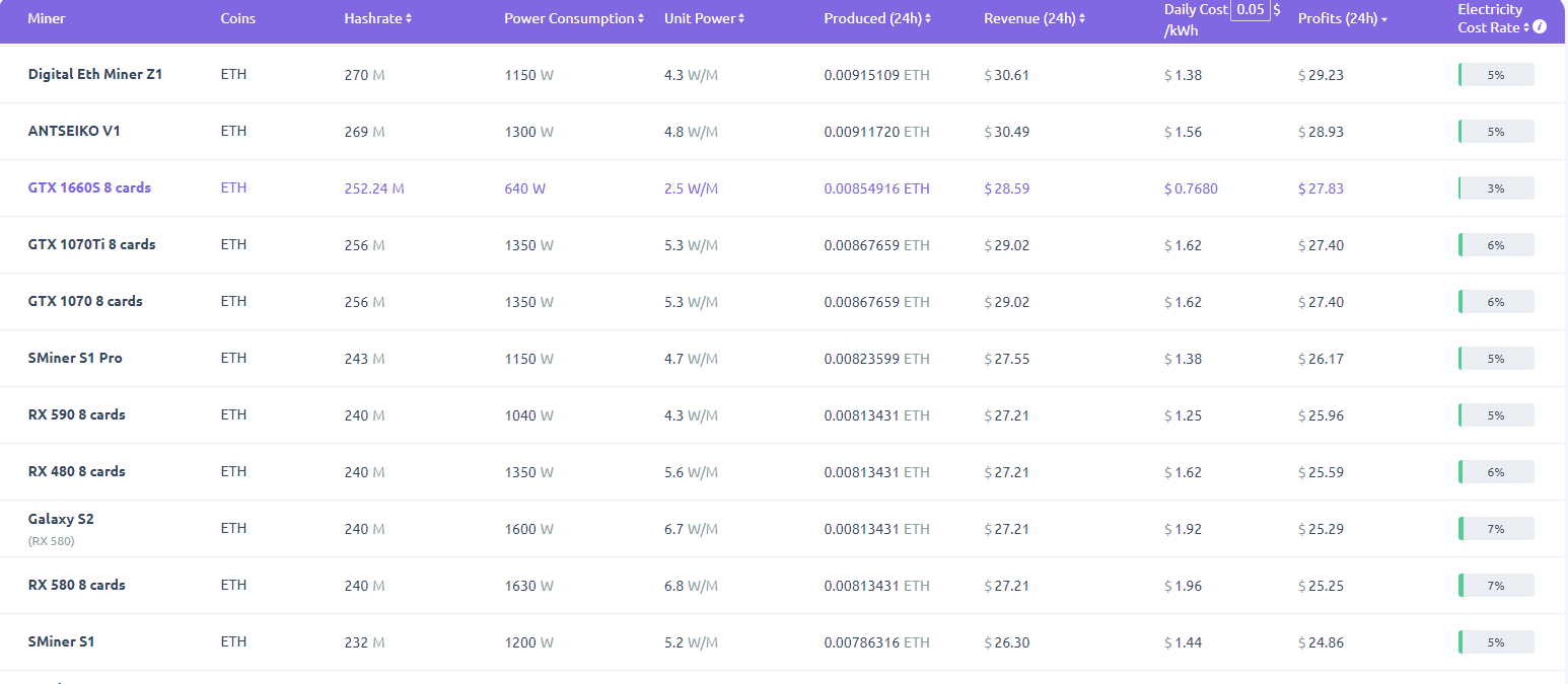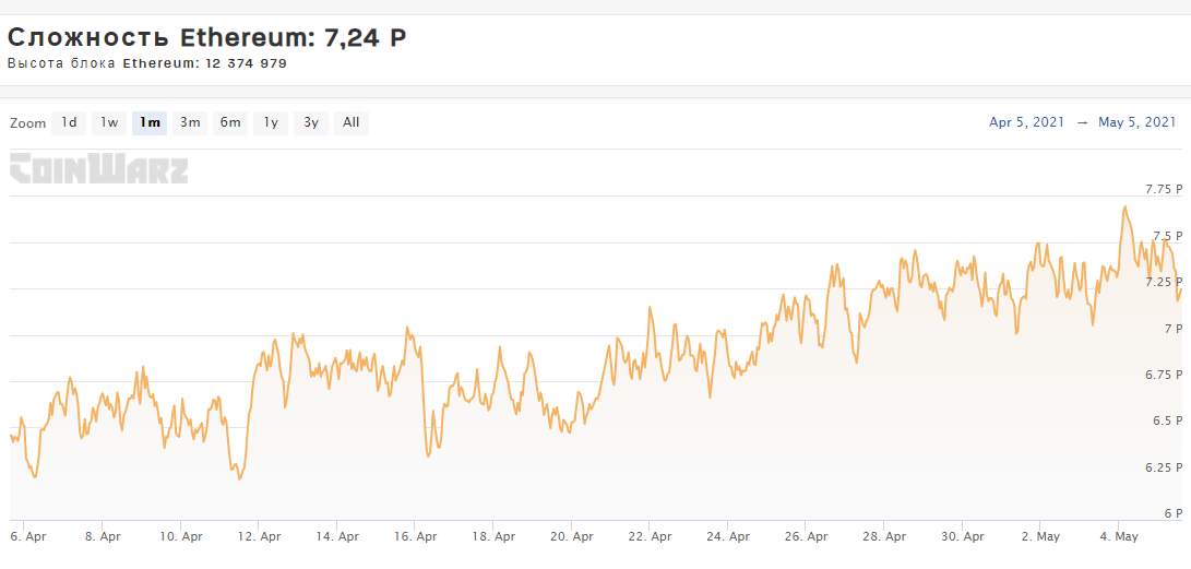Любопытно, что на этот раз на доходы майнеров не оказала влияния даже сверхвысокая сложность добычи, которая снова повысилась после роста цены Эфира. Обычно, всплески стоимости приводят к обратному эффекту, но за последние дни цена выросла настолько резко и так сильно, что пока майнить выгодно даже на самых слабых видеокартах. К примеру, ферма из восьми GeForce GTX 1660 Super выдаёт почти 28 долларов в сутки и больше 800 в месяц, ну а древний Radeon RX 480 добывает 25.6 в сутки и 786 в месяц.