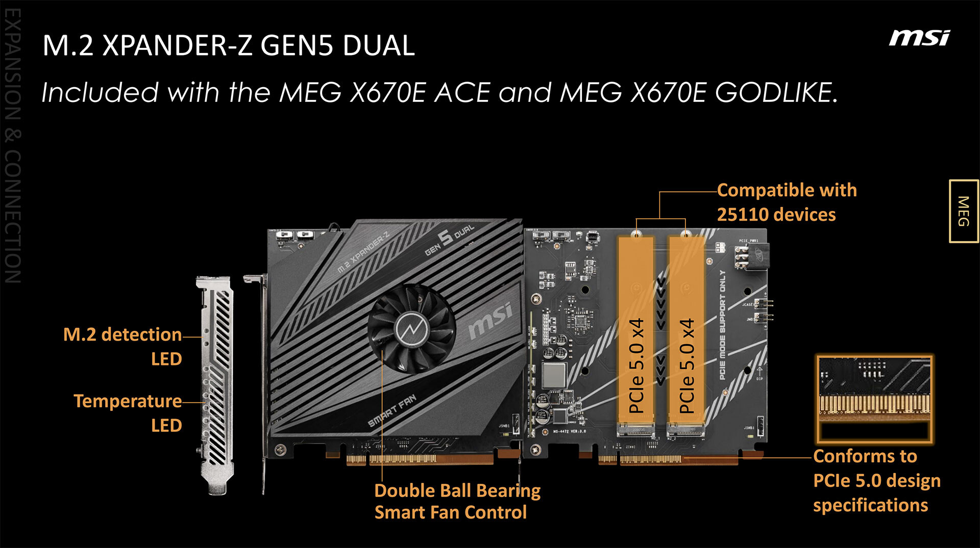 MSI впервые показала свою «монструозную» модель, получившую название MEG X670E GODLIKE: новинка выпускается в форм-факторе E-ATX и отличается подсистемой питания, функционирующей по формуле 24+2 (105 А). Кроме того, плата может похвастаться наличием встроенного дисплея M-Vision Dashboard и входящей в комплект поставки платы расширения M.2 XPANDER-Z Gen5 Dual — такое же устройство будет поставляться и для MEG X670E ACE.
