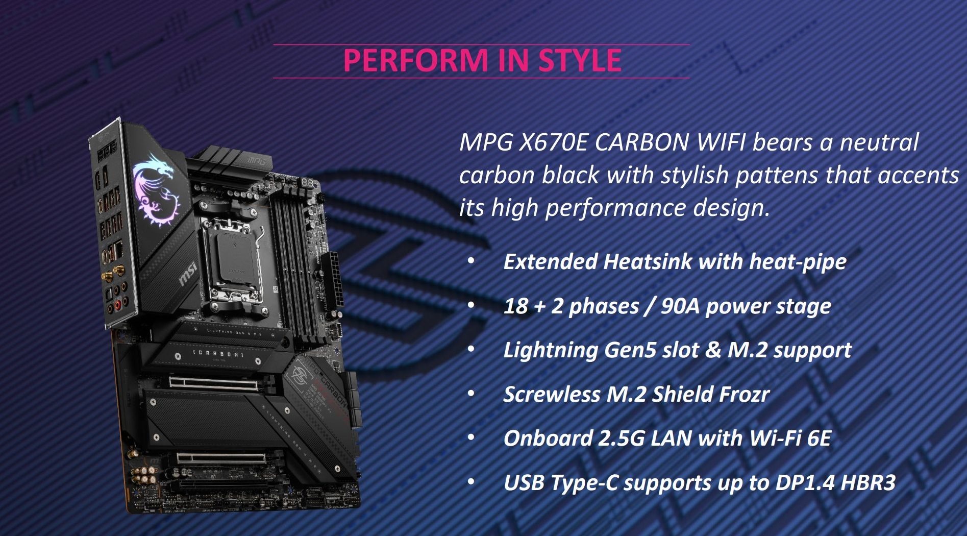 Ещё одна модель от MSI, MPG X670E CARBON WIFI, будет отличаться от своей старшей соплеменницы более скромным оснащением, а подача питания будет осуществляться по схеме 18+2 с наличием каскада на 90 А.