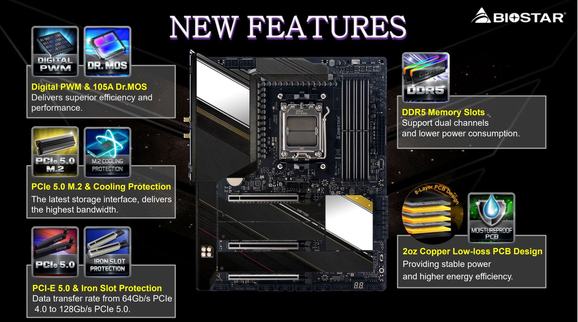 Топовая материнская плата BIOSTAR X670E VALKYRIE обзаведётся 22-фазным VRD-модулем с силовым каскадом 105 А, сможет похвастаться наличием целого ряда новых функций, но пропускная способность Ethernet-порта будет ограничена 2.5 Гбит.