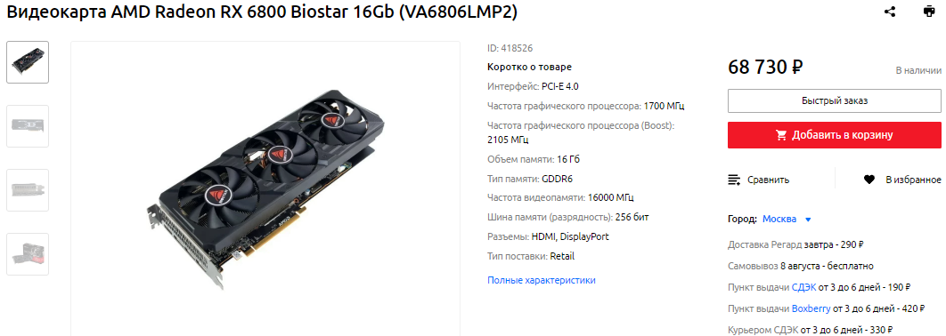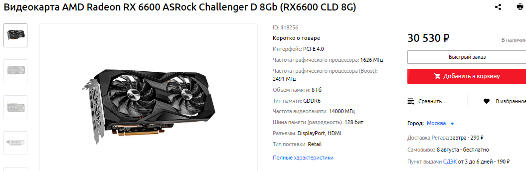 Ровно на 10 000 рублей дешевле есть Radeon RX 6600. Для большинства игр такую видеокарту мы советуем для разрешения 1080р, но The Witcher 3 не настолько требовательная, поэтому будет летать на видеокарте AMD. Radeon RX 6600 дружелюбна к железу и способна обеспечить отличную картинку даже на скромной по цене системе. При этом модель производства GIGABYTE получила невероятно мощную систему охлаждения. В большинстве случаев вы вообще не будете слышать вращения кулеров, а в самых сложных сценах Radeon RX 6600 не доставит проблем вашим музыкальным ушам.