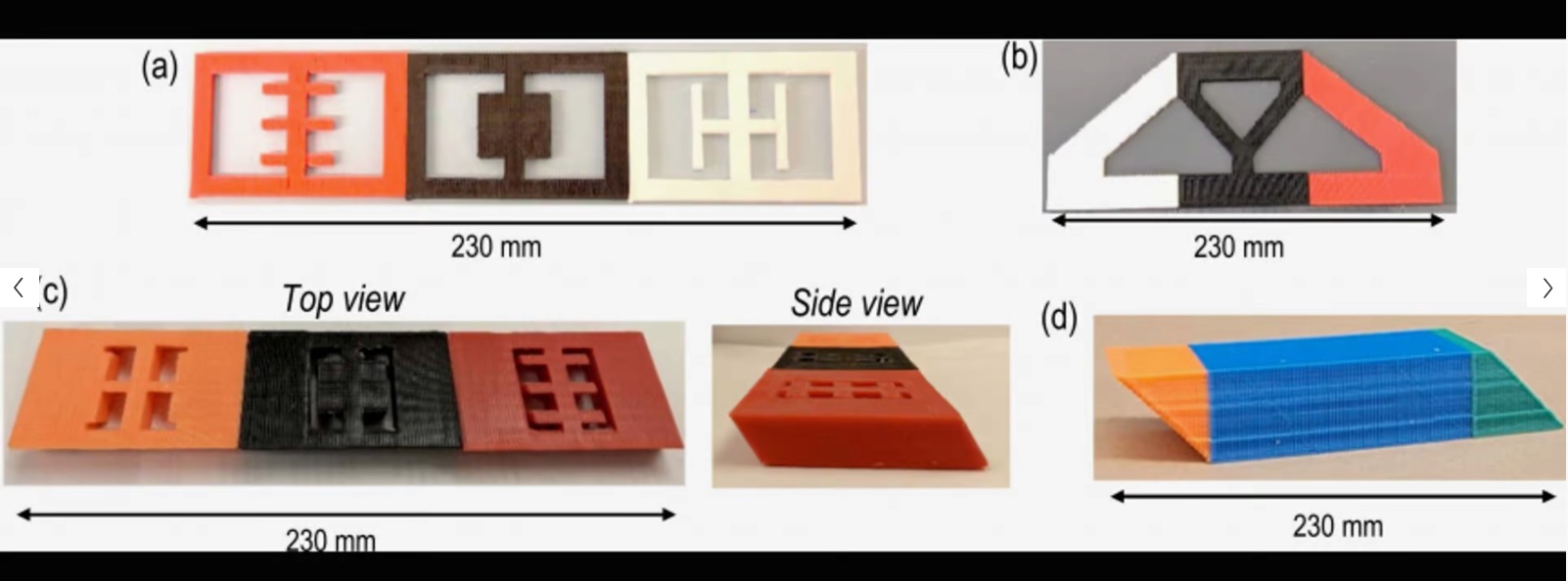 Примеры объектов, созданных с помощью прототипа MF3 с использованием сопел диаметром 0,4 мм. Rutgers University