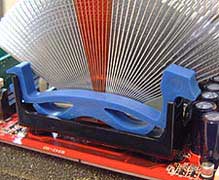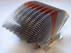 Продукция компании Zalman уже хорошо известна российскому покупателю, и не в последнюю очередь, благодаря своему оригинальному внешнему виду. Как и свой предшественник, CNPS6500B-AlCu состоит из 44 алюминиевых и 8 медных "лепестков", размером 53x68x0.5мм, сжатых воедино двумя винтами из нержавеющей стали. Основное отличие модели с индексом "B" заключается в его способе крепления к процессору. Раньше для этого применялись болты и гайки, что никак нельзя назвать удобным. Теперь 400-граммовый кулер фиксируется в стандартной кроватке разъема socket 478 с помощью двух упругих кусочков пластика. Одним словом - удобно! Посмотрим, как на это новшество отреагируют другие именитые кулеростроители.
