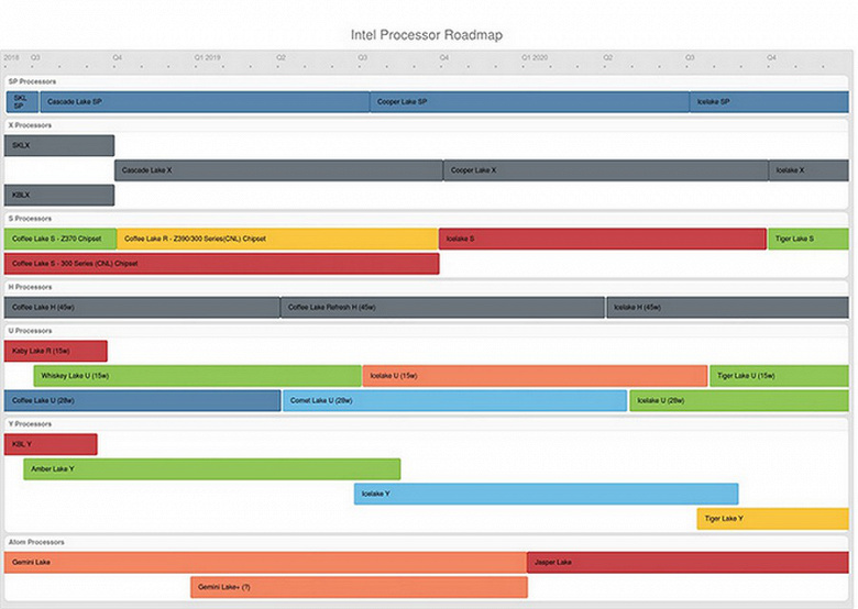 Сегодня американский гигант Intel презентовал процессор поколения Cascade Lake-AP, в конфигурацию которого вошли сразу 48 ядер. В то же время на просторах всемирной паутины появилась дорожная карта компании. С ней вы можете ознакомиться ниже. Благодаря утечке стало известно, когда производитель процессоров планирует презентовать решения новых поколений в разных сегментах.