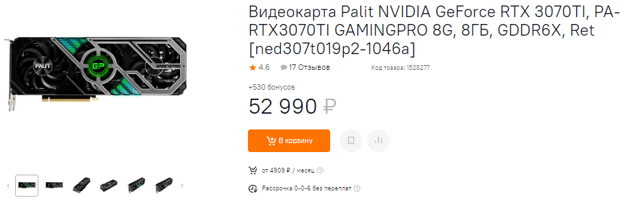 На данный момент цена на видеокарту Palit NvidiaGeForce RTX 3060 подорожала на 2,600 рублей