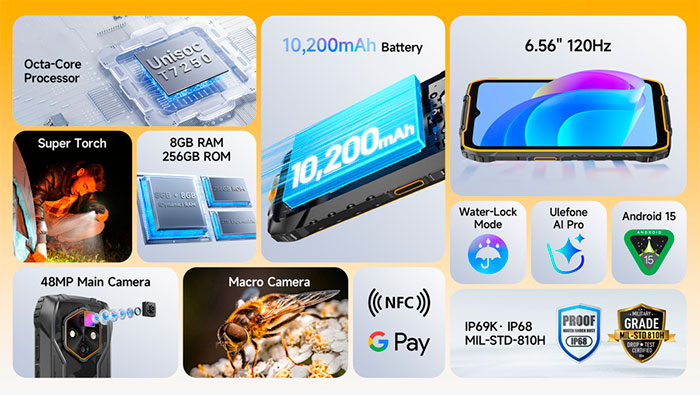 RugKing 4 Pro может быть интересен и для любителей мобильной фотографии, обладая основной камерой с разрешением 48 Мп и макрообъективом для съёмки самых крошечных объектов. Имеющийся во всех смартфонах этой серии режим блокировки воды мгновенно блокирует изображение на экране, позволяя избежать случайных касаний во время ливня. Обладатели смартфона оценят такую возможность, используя его для навигации пешком или во время велосипедных прогулок.