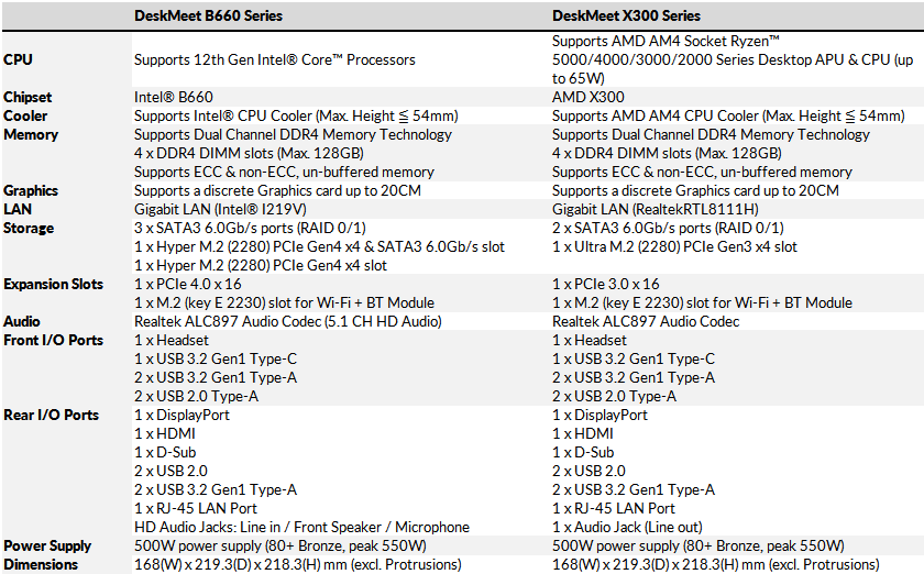 В рамках выставки CES 2022 компания ASRock представила новые компактные системы для досборки DeskMeet B660 и X300 объемом всего лишь 8 литров. Модели X300 поддерживают весь спектр процессоров AMD для платформы AM4, а B660 — новейшие процессоры Intel Core 12-го поколения. Базовый теплопакет процессоров не должен превышать 65 Вт.