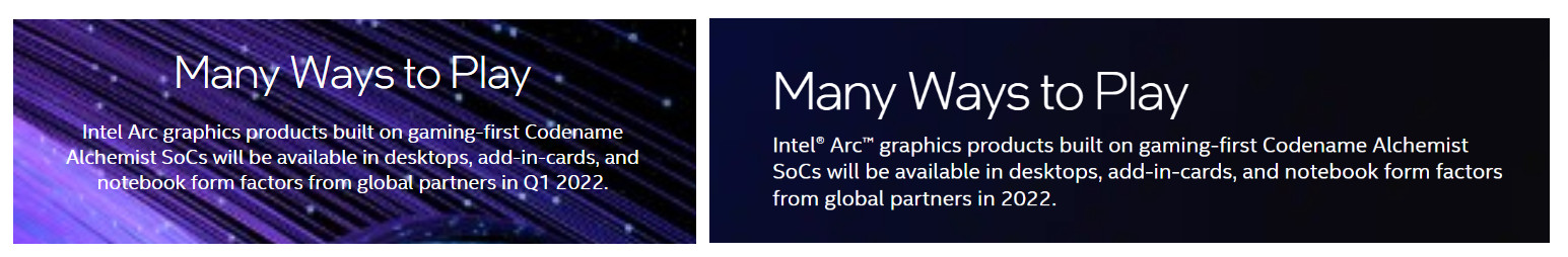 Сообщение от Intel о дате выпуска Arc сбивает с толку. Всего два дня назад компания объявила, что Arc появится в первом квартале 2022 года, и в то же время это подтверждение удаляется с веб-сайта.