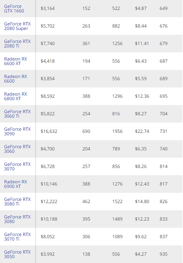Наконец, самой неприбыльной оказалась GeForce RTX 3050. В день она будет приносить всего $4.27, а окупать себя начнёт почти через 3 года.