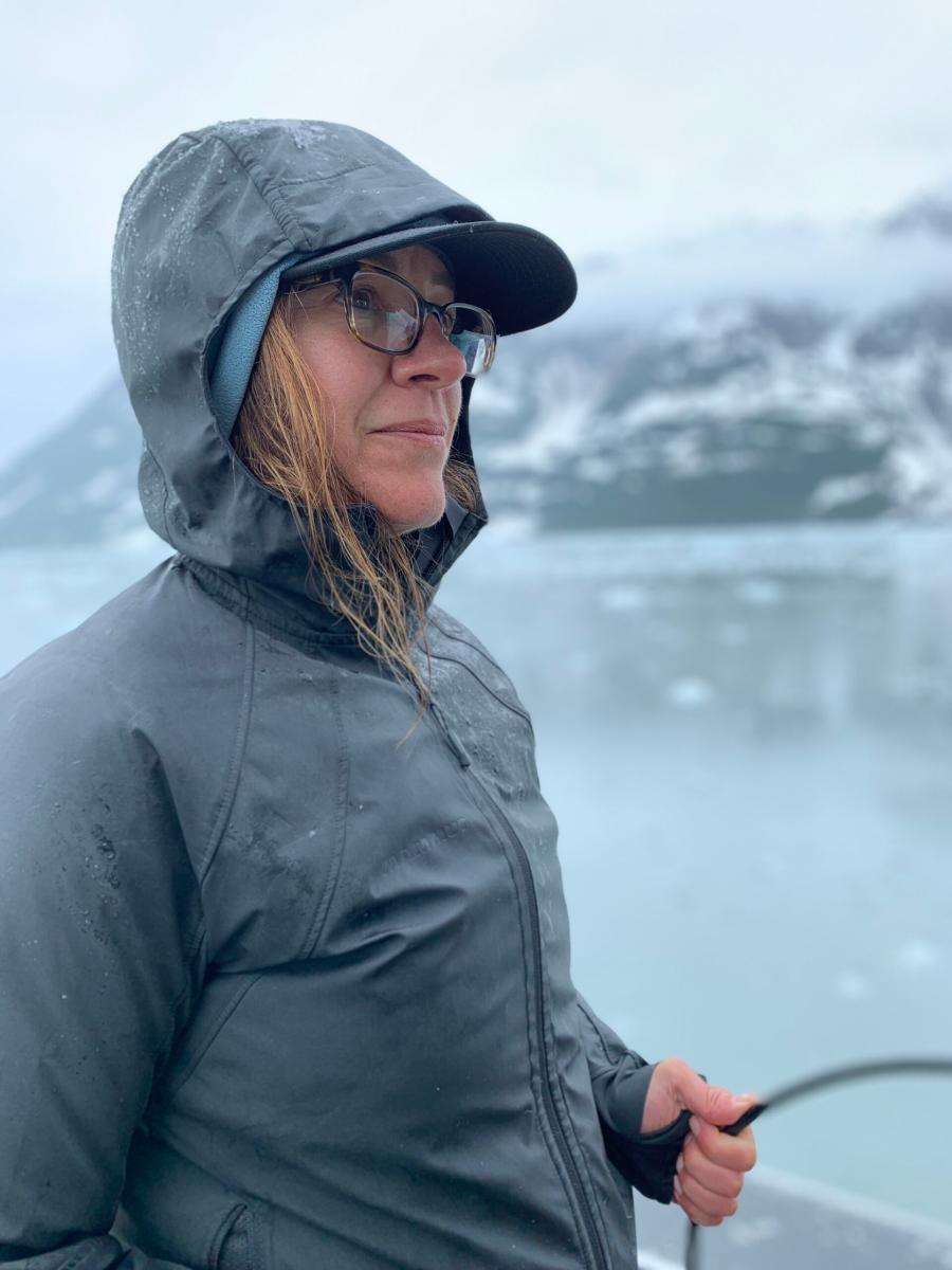 Профессор Джинни Катания из Школы геонаук UT Джексона Техасского университета во время полевой экспедиции 2021 года на один из ледников Аляски. Для нее, как гляциолога, ледники Гренландии и Аляски являются ключевым объектом исследований, направленных на понимание проблемы повышения уровня Мирового океана. Credit: Marcy Davis/Институт геофизики Техасского университета