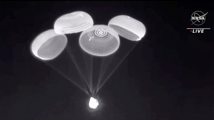 Корабль Dragon компании SpaceX оснащен системой из четырех надежных парашютов, которые замедляют капсулу при возвращении с орбиты до момента ее падения в море. Даже если с одним парашютом что-то пойдет не так, космический корабль все равно сможет благополучно опуститься на воду, используя оставшиеся устройства.