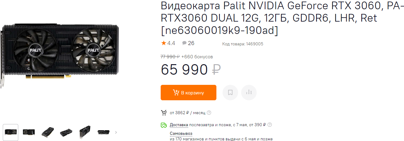 Если вам хочется действительно сэкономить, то стоит присмотреться к мегапопулярной GeForce RTX 3060. Первые несколько недель после релиза цена на неё установилась на отметке в 65 000 рублей, а после постоянно росла, достигая 120 000. Нам кажется, что уже почти год в российских магазинах GeForce RTX 3060 невозможно было встретить по такой низкой стоимости. Учтите, что это идеальная видеокарта для 1080р.