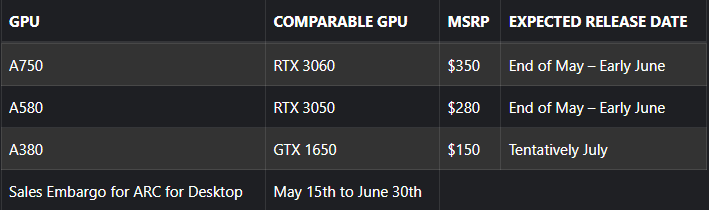 На текущий момент Intel выпустила пару мобильных видеокарт Arc и видели их только в Южной Корее, во втором квартале ожидаются первые настольный видеокарты, возможно, к моменту запуска новинки появятся в большем количестве регионов и разработка драйверов ускорится.