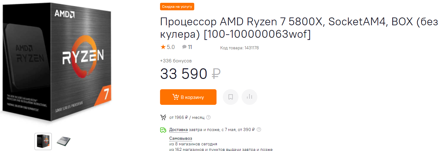 Получается, что цена самого процессора не всегда играет решающее значение в чём мы сегодня и убедимся. Предлагаем вам изучить подборку от 6 мая, выбрав наиболее подходящий для вас камень, или собрать что-то новое. Начнём с неумирающего Ryzen 7 5800X. Нам кажется, что это и есть тот идеальный кандидат на обновление производительной системы, о котором мы говорили выше. Стоит такое удовольствие 33 590 рублей, но нужно ещё докупить хороший кулер. По сравнению с Ryzen 7 1700X, налицо огромный скачок в производительности. Особенно заметно это будет в играх с использованием неплохой видеокарты.