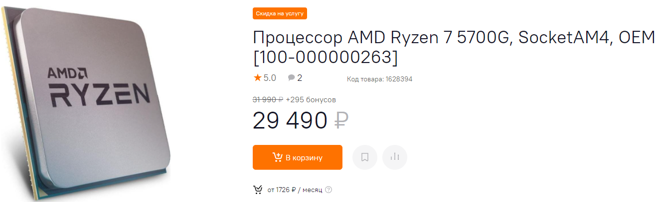 Впервые ниже 30 000 рублей опустился Ryzen 7 5700G. Здесь вас ждут все преимущества архитектуры Zen 3 вкупе с лучшей интегрированной графикой на планете. Это звучит громче, чем есть на самом деле, ведь встроенный графический чип не позволяет играть во все современные игры. И всё же, это отличное предложение, которое позволяет собрать универсальный компьютер без серьёзных вложений.
