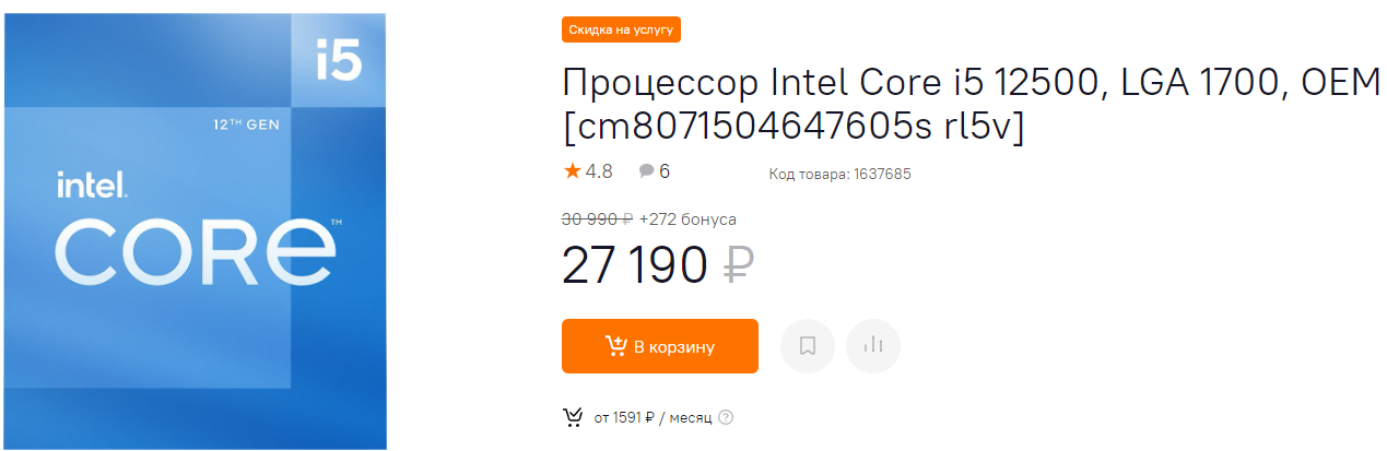 Категорически не советуем Core i5-12500. С нашей точки зрения, это какой-то непонятный процессор, который вообще никому не нужен. Если вы хотите сэкономить, то есть Core i5-12400. В случае, если вам нужно что-то помощнее – берите Core i5-12600. Можно доплатить и взять версию с разблокированным множителем, но вы это знаете и без нас. Что до Core i5-12500, то он выглядит странно, а стоит дорого. Если вы не готовы платить 30 000 рублей за Core i5-12600, то мы вам настоятельно рекомендуем взять Core i5-11600KF. Под него придётся купить материнскую плату подороже, но в данном случае каждый рубль у вас окупится. Если не пожадничать пару сотен рублей на эффективную систему охлаждения, то процессор можно ещё и разогнать, а разница в производительности будет доходить до 20%. Словом, даже если мы говорим о процессоре прошлого поколения, то камень с разблокированным множителем всегда будет впереди более нового, ограниченного по TDP и разгону. Помните об этом, когда планируете сборку нового системного блока или обновление уже текущего компьютера.