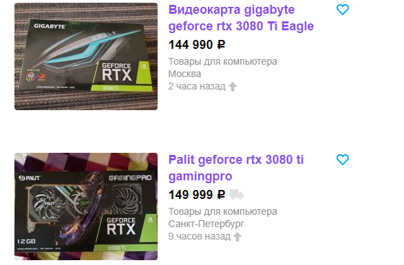 С GeForce RTX 3080 Ti точно такая же картина. В рознице за близкую к эталонной модель просят 160 000, ну а перекупщики пытаются её реализовать за 145 000. На этот раз выгода составляет целых 15 тысяч, вот только сейчас не начало июня, а значит найти покупателя на видеокарту с урезанным хешрейтом сложно. Кстати, как грибы стали появляться объявления о продаже GeForce RTX 3080. Обычно пишут, что покупалась для игр, не майнила, стояла в офисном ПК или просто лежала на полочке в ожидании счастливого покупателя. Интересно, верит ли кто-то в подобные сказки, как считаете?