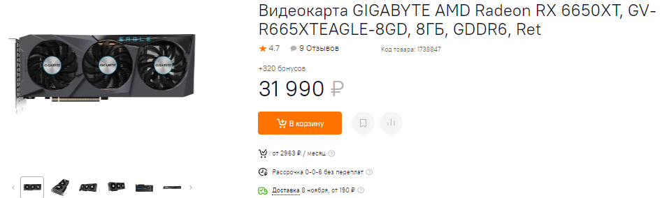 К примеру, за 32 тысячи вы можете купить Radeon RX 6650 XT. Сразу отметим, что не считаем текущие цены в целом нормальными, но других нет, поэтому будем исходить из существующих реалий. Так вот, эта видеокарта кажется нам одной из лучших в своём ценовом сегменте, намного превосходя потенциальных противников из зелёного лагеря. Любителей компьютерных игр поджидают 8 Гб видеопамяти и скромное потребление энергии. Ровно на 4 тысячи дешевле доступна Radeon RX 6600. Может показаться, что стоит взять менее дорогой вариант, вот только это не так. Сэкономив, вы теряете довольно жирный кусок производительности. При этом в данном ценовом сегменте 4 тысячи – это далеко не критичная сумма. Одним словом, берите Radeon RX 6650 XT, ведь младший графический чип должен стоить не больше 24 тысяч рублей.