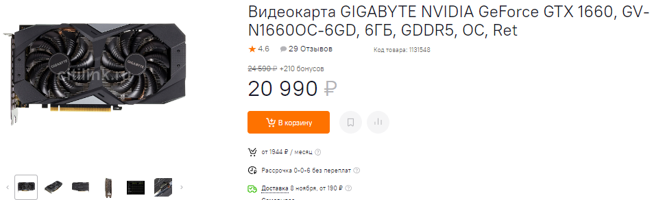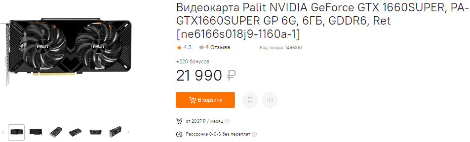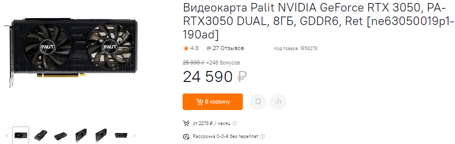 За 24 590 можно купить GeForce RTX 3050. В последнее время эта видеокарта дешевеет, хотя происходит это неспешно и почти незаметно. Владелец GeForce RTX 3050 сможет на много лет решить вопрос с доступом к играм в разрешении 1080р, ведь даже блокбастеры следующего поколения будут работать без сбоев. В наличии всё те же 8 Гб видеопамяти и довольно неплохое соотношение между быстродействием и энергоэффективностью. За 22 тысячи на прилавке лежит GeForce GTX 1660 SUPER. Во многих тестах обе видеокарты показывают почти аналогичный фрамрейт, но здесь истина кроется в деталях. Так, GeForce GTX 1660 SUPER выпущена в 2019 году и предлагает всего 6 Гб видеопамяти. GeForce RTX 3050 неидеальна, но потенциально интереснее ещё и из-за поддержки трассировки лучей. Но если понять экономию 2500 рублей на GeForce GTX 1660 SUPER ещё как-то можно, то брать GeForce GTX 1660 за 21 тысячу – это откровенная глупость. Здесь вас ждёт настоящий провал по количеству кадров в секунду, поэтому обязательно смотрите, а стоил ли экономия потерянного быстродействия.