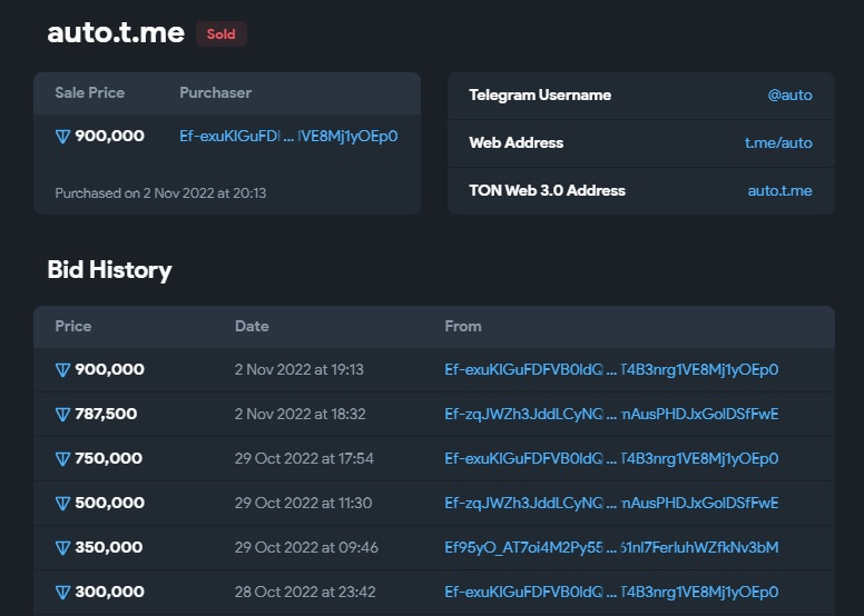 Еще одно нововведение это возможность покупать коллекционные публичные имена для профилей и каналов. Купить и продать их можно на Fragment. Например, никнейм @auto был продан за 1.4 млн$. Основное отличие этих имен, то что они могут быть до 5 символов.