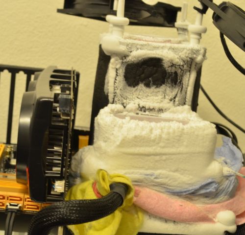 Кстати, память G.Skill тоже охлаждалась жидким азотом. Резервуары для него разработаны соотечественником рекордсмена - энтузиастом с псевдонимом Der8auer. Попутно этот же процессор показал лучший результат в XTU (1613 баллов), разогнавшись до 6090 МГц под жидким азотом.