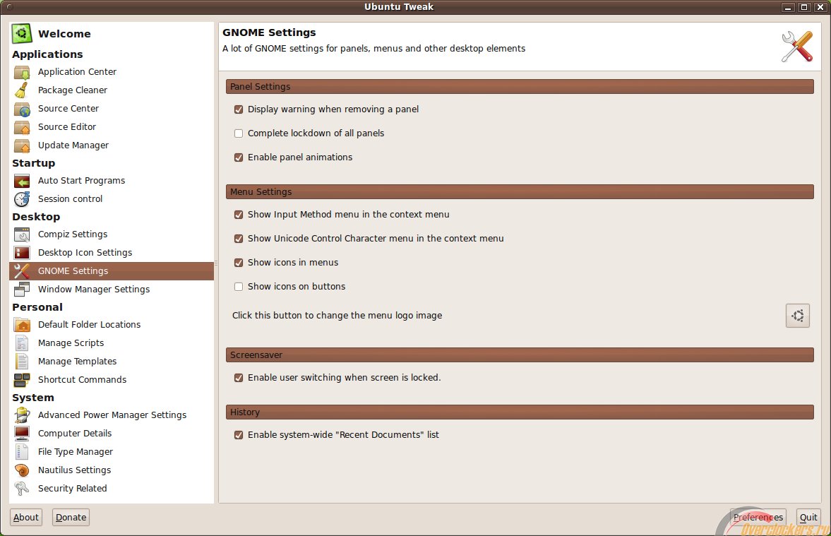 Установить программу можно для Ubuntu 9.04/10.04 можно по команде «sudo apt-get install ubuntu-tweak» предварительно добавив репозиторий «sudo add-apt-repository ppa:tualatrix/ppa» и обновив источники «sudo apt-get update». Инструкции по установки на другие версии Ubuntu можно найти на официальном сайте.