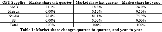 Matrox и S3 присутствуют в таблице лишь номинально - тем более, что первая перешла на использование графических процессоров AMD.