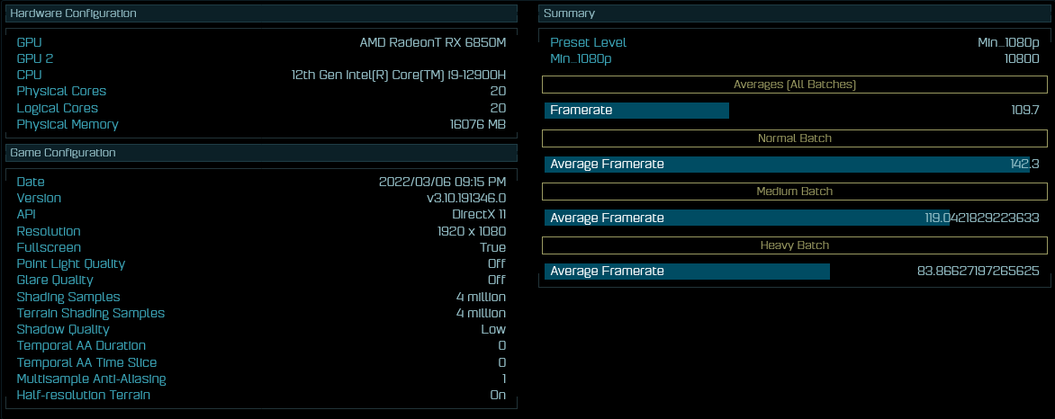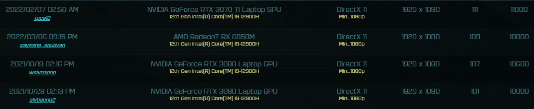 Ashes of The Singularity опередил модель видеокарты как AMD Radeon RX 6850M, компания никогда не анонсировала такой вариант, поэтому с большой уверенностью можно сказать, что это просто ошибка. Модель набирает 10800 баллов и может выдавать 109 кадров в секунду при настройках Min_1080p. По сравнительным оценкам ресурса Notebookcheck, производительность графического ускорителя аналогична мобильной GeForce RTX 3070 Ti от NVIDIA, которая при тестировании с аналогичным процессором и настройками набирает от 10 до 11 тыс баллов.