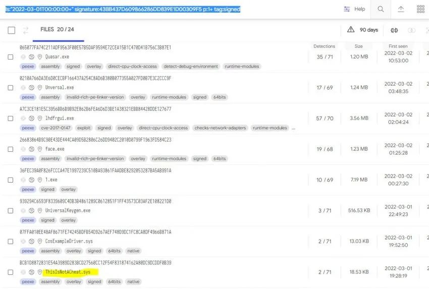 Специалисты установили, что входящие в первый пакет опубликованных файлов подписанные сертификаты сейчас используются вредоносными программами. Срок действия обоих украденных сертификатов истёк. Это не мешает Windows давать разрешение на скачивание подписанных с помощью этих сертификатов драйверов.