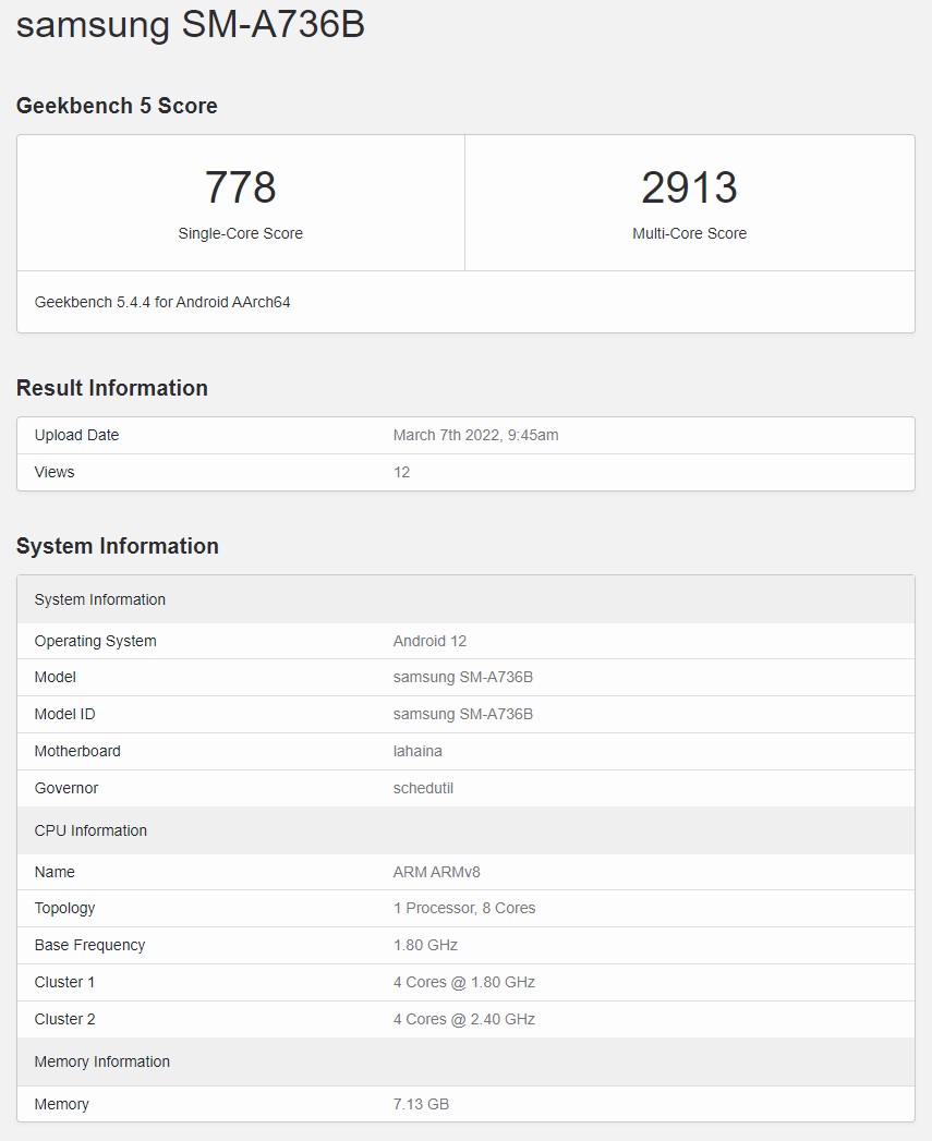 Samsung Galaxy A73 будет более производительным, нежели считалось раньше, пишет GSMArena. Прежде считалось, что там будет применяться процессор Snapdragon 750G, как в A52 5G. Тестирование Geekbench показывает, что установлен процессор Snapdragon 778G.