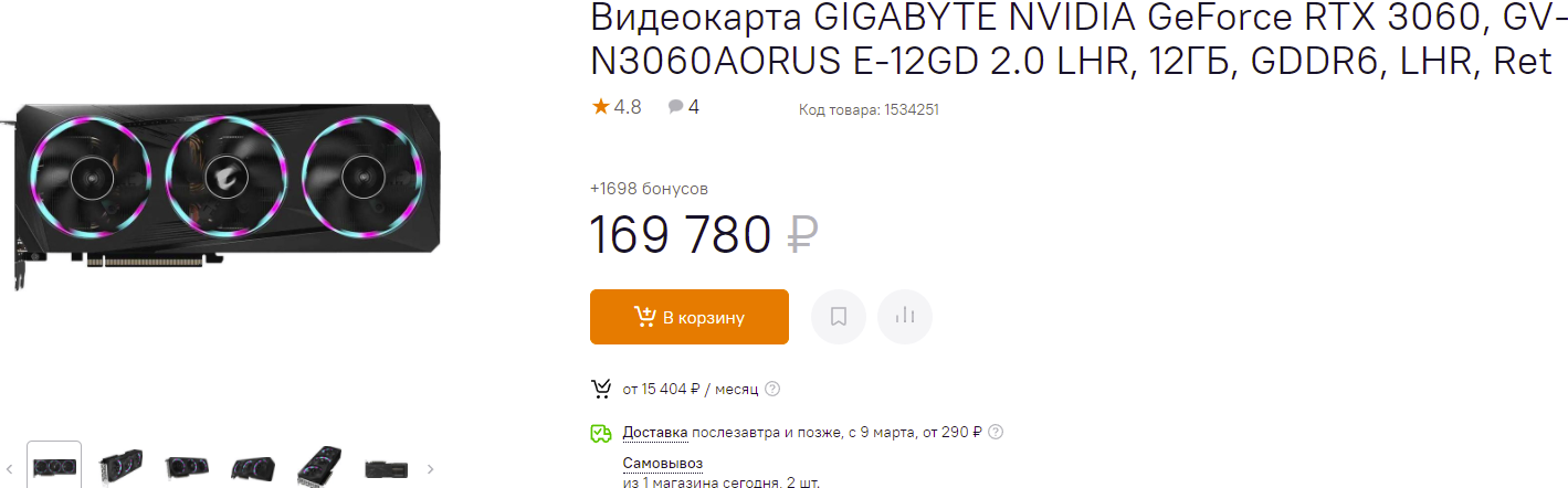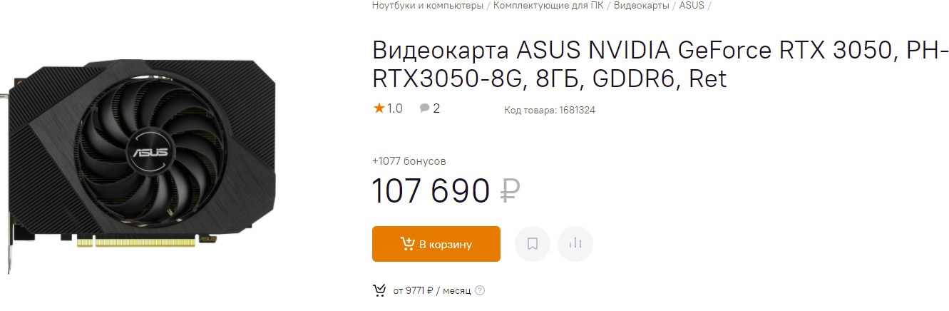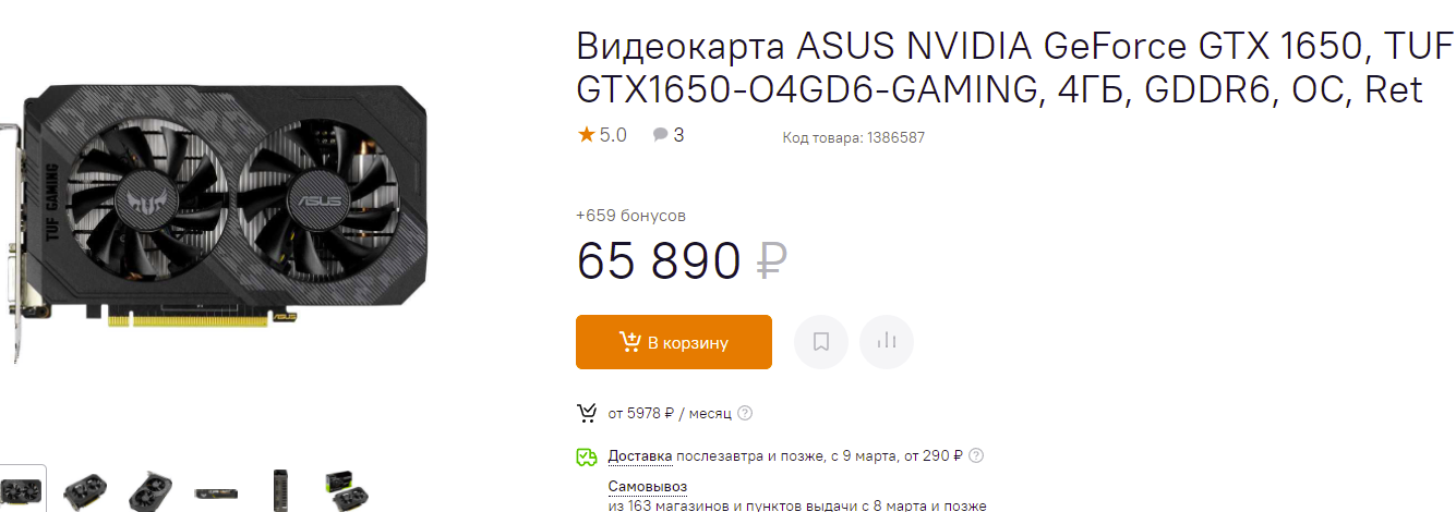 Если вам казалось, что GeForce RTX 3050 за 43 000 рублей – это дорого, то самое время оценить её текущую цену. Как вам 107 690 рублей? А ведь на западе за последнюю неделю многие видеокарты сильно подешевели. Ну и финальный аккорд: GeForce GTX 1650 за 65 890 рублей. Многие предполагают, что магазины просто пересчитали видеокарты по новому долларовому курсу. GeForce GTX 1650 доказывает, что это не так. Смотрите: неделю назад она стоила 26 тысяч. Даже если считать по 120 рублей за 1 доллар, выходит 50% рост курса, ну а здесь 2.5-кратное подорожание. Добро пожаловать в новый мир тотального дефицита. Информация предоставлена в ознакомительных целях. Мы настоятельно не рекомендуем ничего покупать. Видеокарт в магазинах очень много, а уже вскоре подтянуться серые китайские поставки.