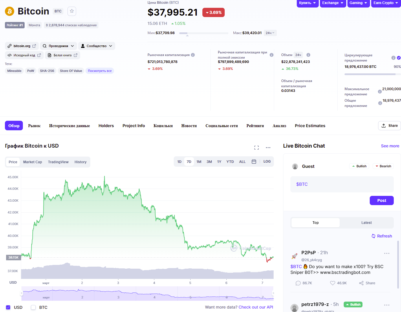 На прошлой неделе криптовалюты продемонстрировали небывалый рост, который был вызван попытками жителей РФ перевести свои деньги в Биткоины. На этом фоне курс цифрового золота пробил 45 000 долларов, а западные аналитики уверяли, что нас ждёт очередной ценовой рекорд. Не сложилось. Сегодня Биткоин провалился ниже 38 000 долларов, что было предсказано экспертами ещё вчера. Если ещё недавно казалось, что цифровые активы станут тихой гаванью для миллионеров, а акции крупных компаний позволят обеспечить безбедную старость, то в настоящее время приходится констатировать, что традиционные биржи просели на 2.9 триллиона долларов всего за неделю.