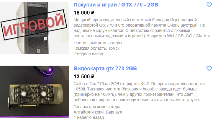 Как хорошо было жить в 2013 году. В начале июня на российский рынок поступила видеокарта GeForce GTX 770, цена на которую начиналась с 500 долларов. Это было больше рекомендованных 399 вечнозелёных для США, но несравнимо с тем безобразием, которое разразилось в 2021 году. Долгое время GeForce GTX 770 оставалась популярна, но со временем стала исчезать даже с вторичного рынка. Годы берут своё, а графические чипы не вечны, и всё же, сегодня ещё можно встретить старые карточки на Авито, где цены на них стартуют с 13 500 рублей. В нормальных условиях это стало бы настоящим грабежом, вот только на фоне ухода NVIDIA с рынка РФ, магазины взвинтили цены в несколько раз.