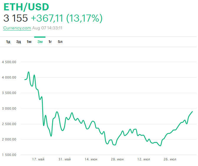 Как и ожидалось, Хардфорк London привёл к удорожанию Эфира. На момент написания данного материала он перевалил за 3000, где закрепился и уже в ближайшее время может уйти вверх. Получается, что за последние три дня криптовалюта выросла на 600 долларов, что выглядит весьма впечатляюще. В такой ситуации стоило бы ждать резкого увеличения доходности майнига, вот только всё не так просто, ведь кроме высокой цены есть ещё и показатель сложности добычи. Дело в том, что многие фермеры добывают Эфир на домашних фермах, где работает несколько видеокарт. В моменты резкого падения цены криптовалюты, они отключают фермы, а после подорожания Эфира начинают их активировать и докупать новые видеокарты. Именно такие данные можно увидеть, гладя на график хешрейта ниже.