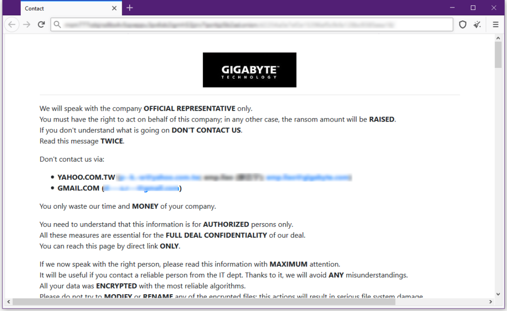 Тайваньский производитель компьютерного оборудования GIGABYTE подвергся атаке с использованием программ-вымогателей, и в настоящее время хакеры угрожают опубликовать более 112 ГБ бизнес-данных в даркнете, если компания не согласится с их требованиями о выкупе.