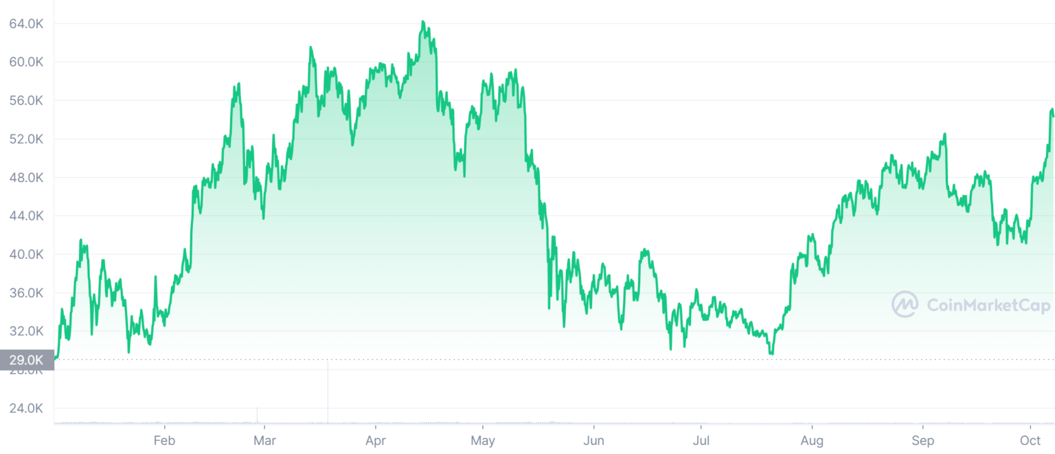 Только сегодня Bitcoin вырос на 10 процентов и, таким образом, достиг максимальной отметки за пять месяцев. Один BTC, который кстати можно купить как физическую монету на Amazon, в настоящее время достиг отметки в 55000 долларов. Скачок был вызван заявлением председателя ФРС Джерома Пауэлла, в котором он пояснил, что запрета на криптовалюту в Соединенных Штатах не будет. В дополнение к этому, несколько крупных американских банков заявили о своем позитивном отношении к криптовалютам и их неоспоримой значимости в финансовом секторе. Однако текущая цена Bitcoin на 15 процентов ниже исторического максимума, достигнутого в апреле 2021 года.