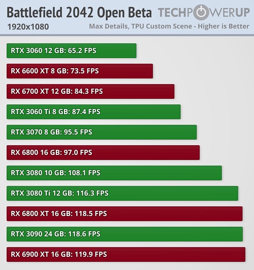 позапрошлогодней RX 5700 XT над свежей RTX 3060. Однако даже так в самом топе производительности находятся в основном флагманы Nvidia RTX 3080/RTX 3080Ti/RTX 3090. Почти одинаковый максимальный FPS у множества карт в разрешении 1080р может свидетельствовать о том, что производительность тестовой системы упёрлась в возможности процессора.